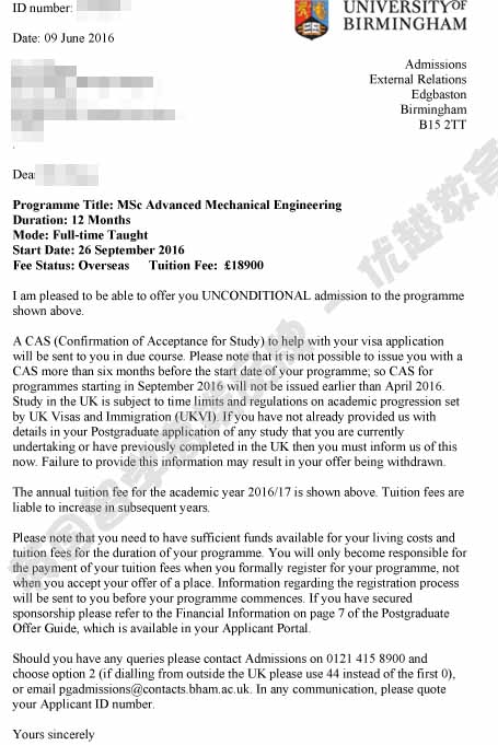 当前位置: 首页 > 关于优越 > 录取榜单 > 恭喜丁同学获得伯明翰大学机械工程专业硕士通知书