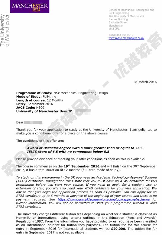 当前位置: 首页 > 关于优越 > 录取榜单 > 恭喜朱同学获得曼彻斯特大学机械工程设计专业硕士通知书