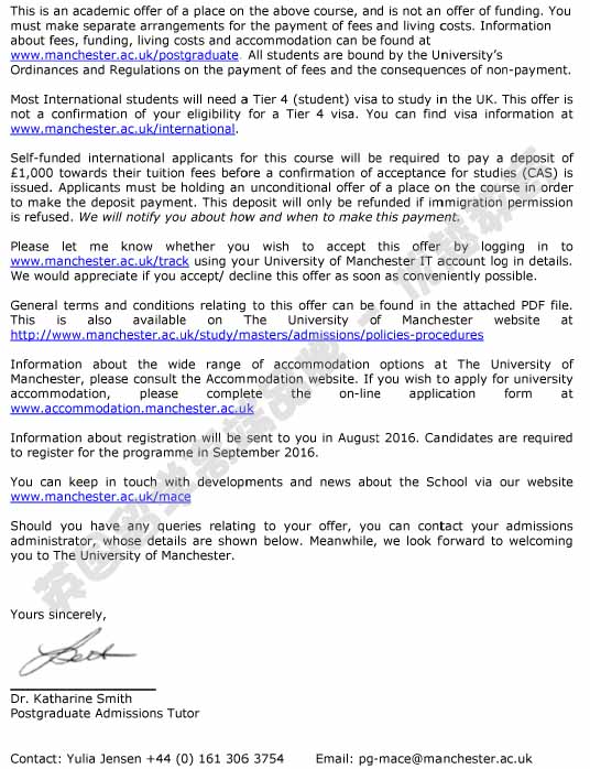 恭喜朱同学获得曼彻斯特大学机械工程设计专业硕士通知书