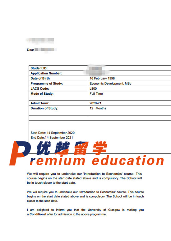 2020offer:恭喜李同学获得格拉斯哥大学(世界排名:67)经济发展专业硕士通知书