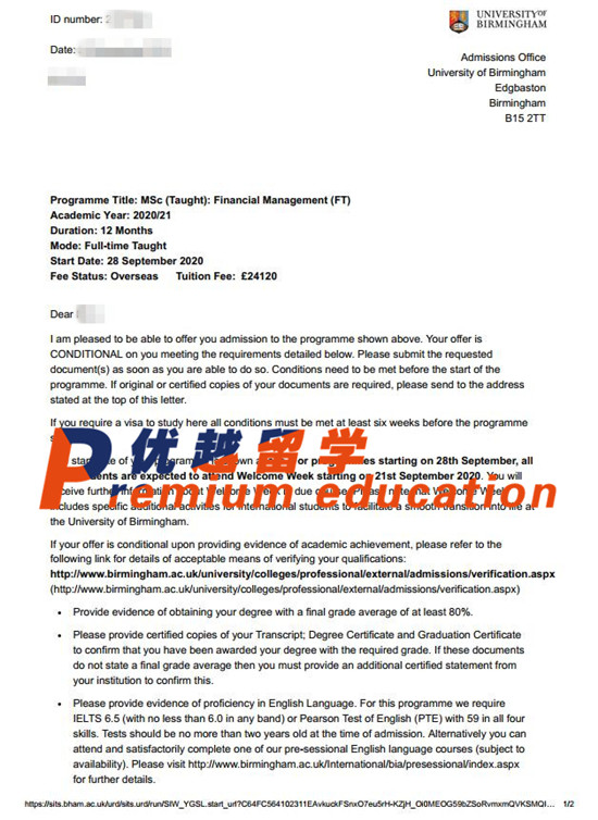 录取院校:University of Birmingham