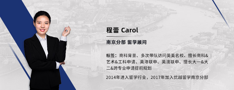 优越程老师2014年进入留学行业,一直从事留学相关工作。对于商科,工科,艺术和教育等专业的学生申请经验丰富,名校offer众多。加入优越之前,有过两年国际艺术作品集培训工作经验,曾多次受邀带队到英美知名院校进行夏校学习和交流参展。程老师熟知英国各大学校偏好,了解英国申请细节,多年留学教育工作经历使我更关注学生的需求,挖掘学生亮点,为学生量身定做适合的留学计划和职业规划,凭借专业的申请知识,多年的工作经验,本着细致负责的工作态度,为学生提供最专业的留学指导!