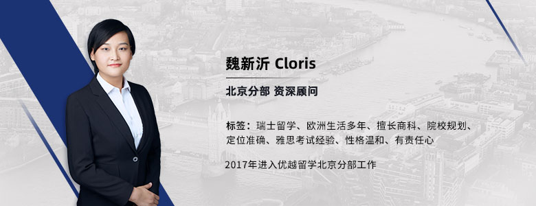 优越留学 Cloris老师毕业于瑞士知名大学,拥有5年英国留学行业工作经验,在欧洲多年的学习与生活,深入了解了英国及欧洲院校的教育体系,对英国的教育体制以及风土人情极为了解,能根据学生的背景条件与兴趣方向制定全面合理的以及个性化的留学方案,能够深切的体会到留学学生与家长的感受,凭借着对院校的精准把握,后期流程完善的服务,她成功帮助许多学生申请到英国牛津剑桥,帝国理工,伦敦政经,伦敦大学学院,爱丁堡,曼大,华威等英国顶级名校。